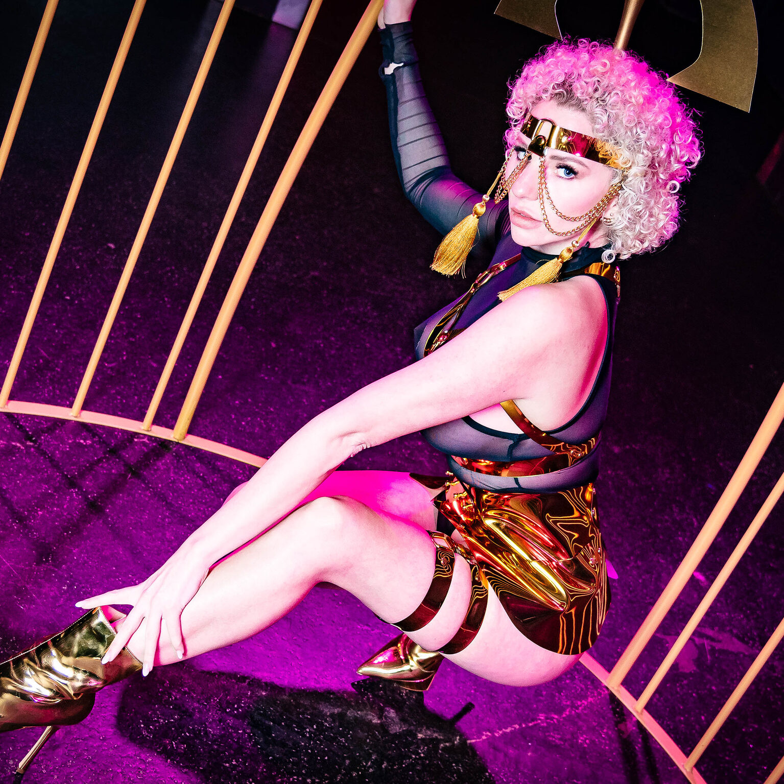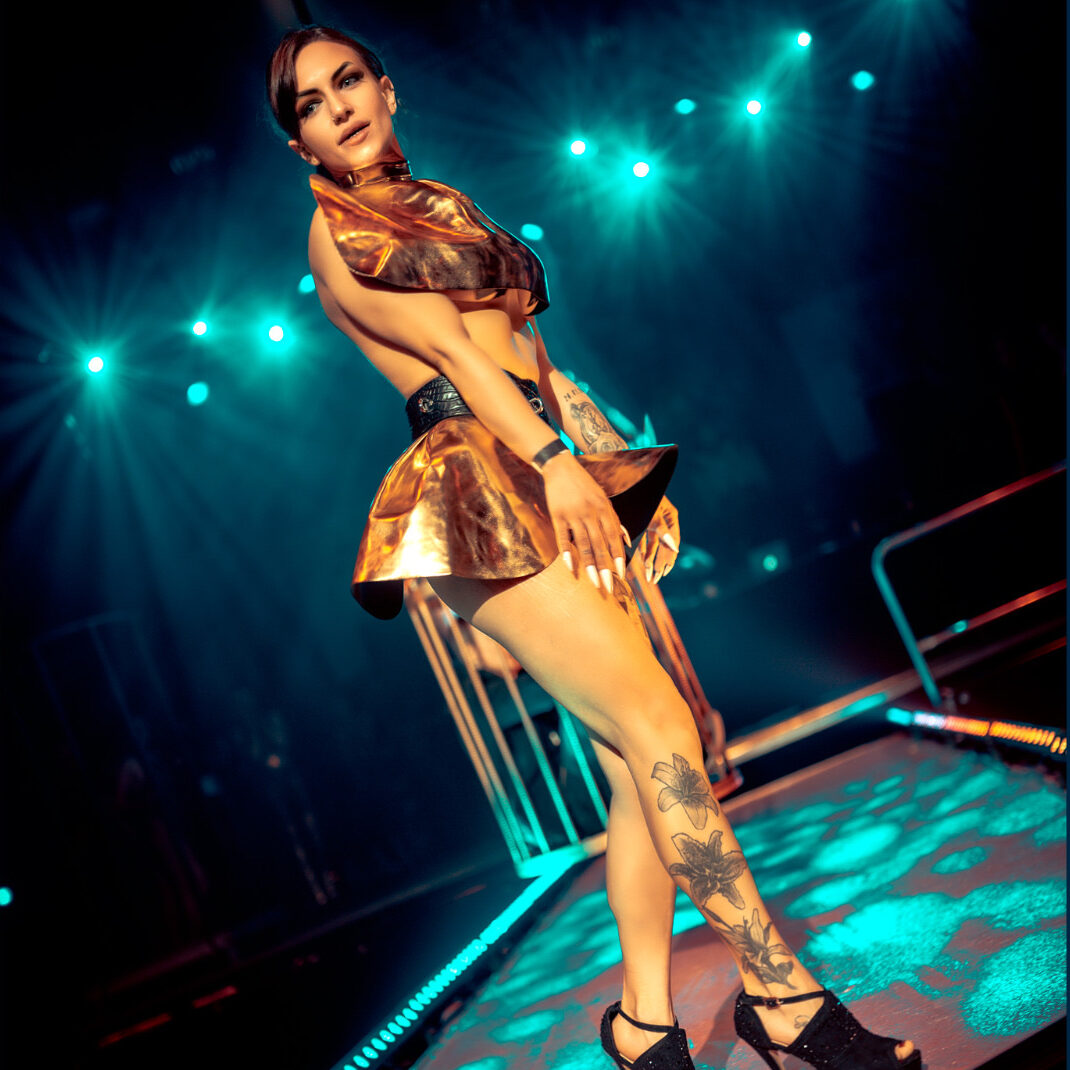 Die Künstlerin, die Fetisch und Kunst verschmelzen lässt. Mit provokanten Designs und einzigartigen Inszenierungen inspiriert sie eine internationale Community und feiert die Freiheit des individuellen Ausdrucks.